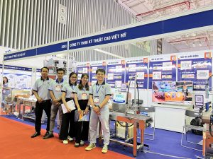 Tại triển lãm, gian hàng của Cao Việt Mỹ thu hút sự quan tâm đặc biệt từ nhiều doanh nghiệp trong và ngoài nước. Với mô hình trình diễn thiết bị thực tế, khách tham quan được trải nghiệm công nghệ hiện đại trực tiếp và nhận tư vấn giải pháp phù hợp ngay tại chỗ.
